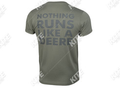 Klassisches Rundhals-T-Shirt mit John Deere-Logo auf der Vorderseite und dem Aufdruck "Nothing runs like a deere" auf der Rückseite. Material: 100% Baumwolle.