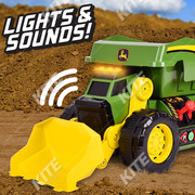John Deere joystickkal irányítható, zenélő és világító dömper. A játék 4 db AA elemmel működik, melyeket a doboz tartalmaz.